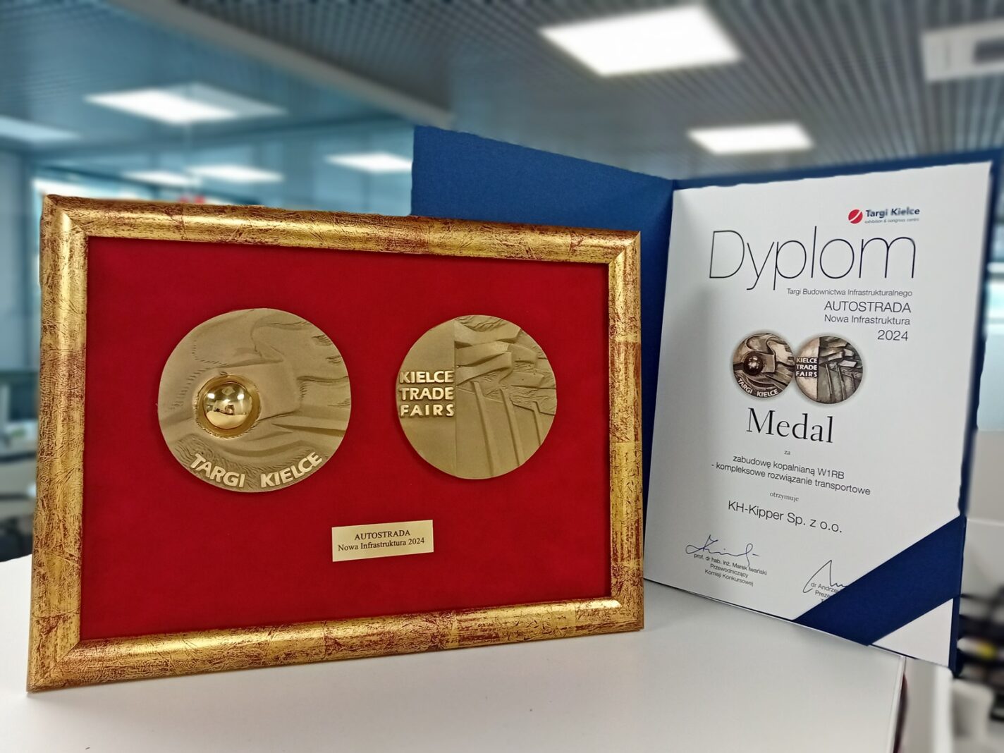 Swoją premierę miał nasz najnowszy produkt – zabudowa W1RB. Jej innowacyjna konstrukcja stworzona została do maksymalnie efektywnego transportu urobku w kopalniach odkrywkowych. Produkt otrzymał medal targów Autostrada jako kompleksowe rozwiązanie transportowe. Uroczysta gala wręczenia nagród odbyła się drugiego dnia targów. Nagrodę z rąk Prezesa Zarządu Targów Kielce, Andrzeja Mochonia, odebrał Prezes KH-KIPPER, Andrzej Kamionka.