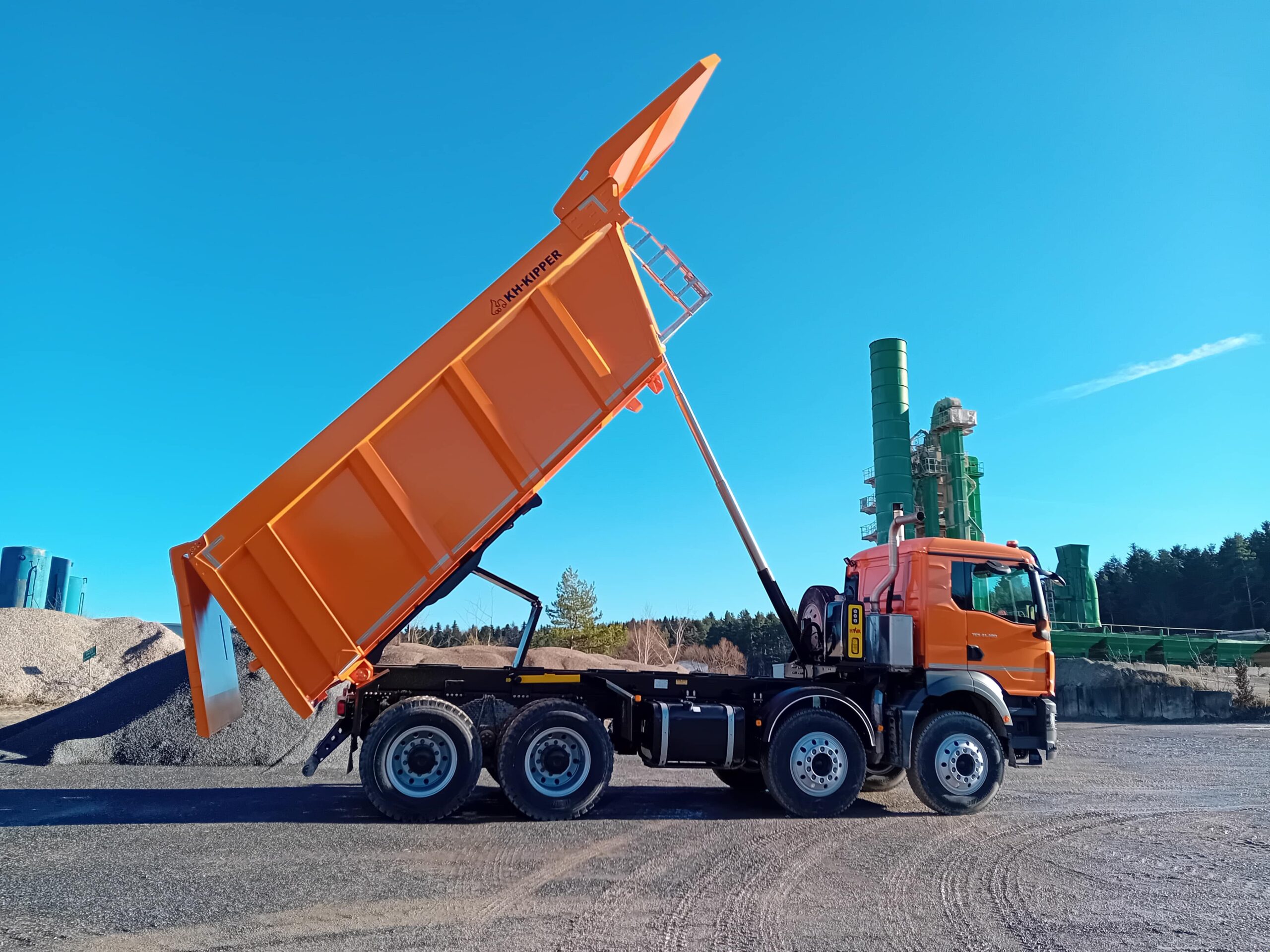 W1C tippers are made of high-quality HARDOX steel. Features such as a foldable ladder, side guard rails, and a well thought-out position of the spare wheel increase operational safety. The use of modern materials also translates into lower fuel consumption and lower CO₂ emissions, combining efficiency with an environmentally friendly approach.