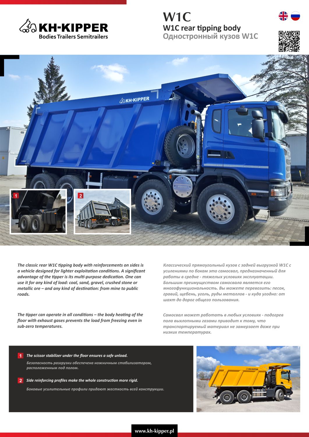 The W1C tipper is designed for operation in the harshest conditions of open-pit mines, combining versatility and durability. KH-KIPPER tipper bodies can operate both in mines and on public roads, transporting a variety of materials, such as coal, anthracite, and metal ores.