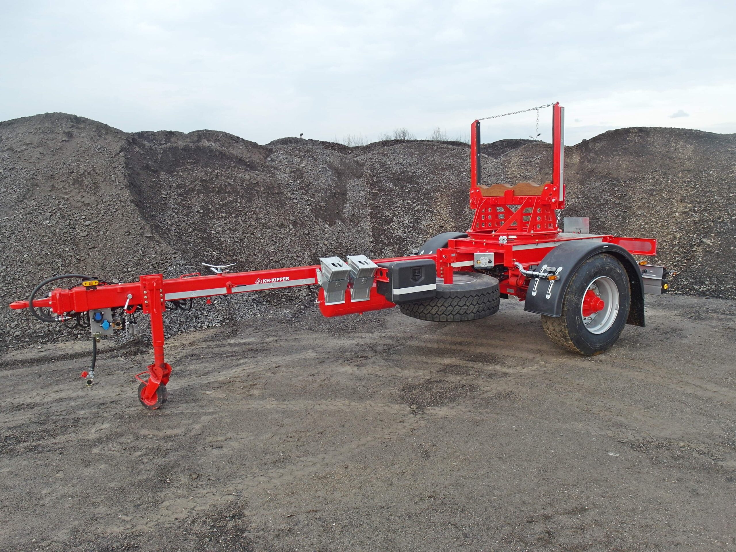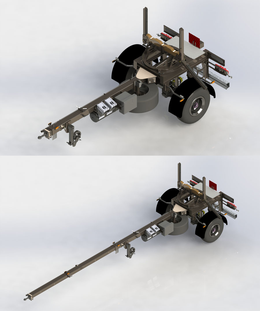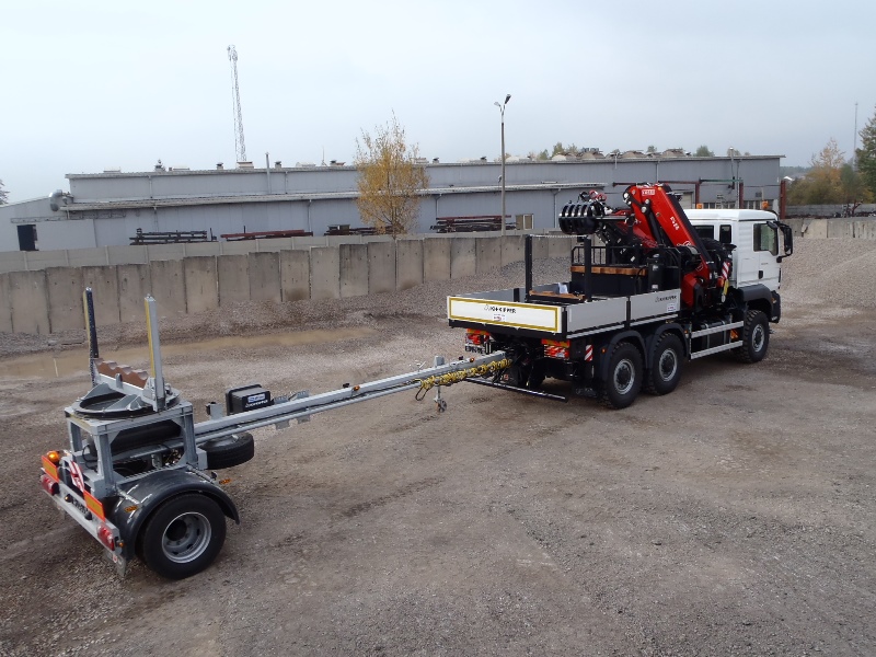 Jednoosiowa rozsuwana przyczepa z obrotnicą jest dedykowana firmom zajmującym się budową, modernizacją i remontami instalacji gazowych, wodociągowych oraz sieci energetycznych. Z powodzeniem może współpracować z samochodami ciężarowymi o napędzie 4×4 lub 6×6 lub maszynami budowlanymi.