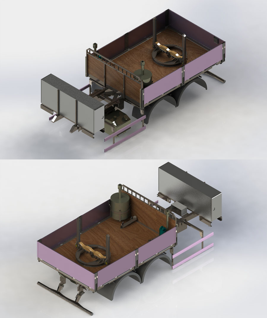 Zamontowanie obrotnicy na skrzyni stałej umożliwia współpracę z przyczepą i przewóz długich słupów energetycznych.